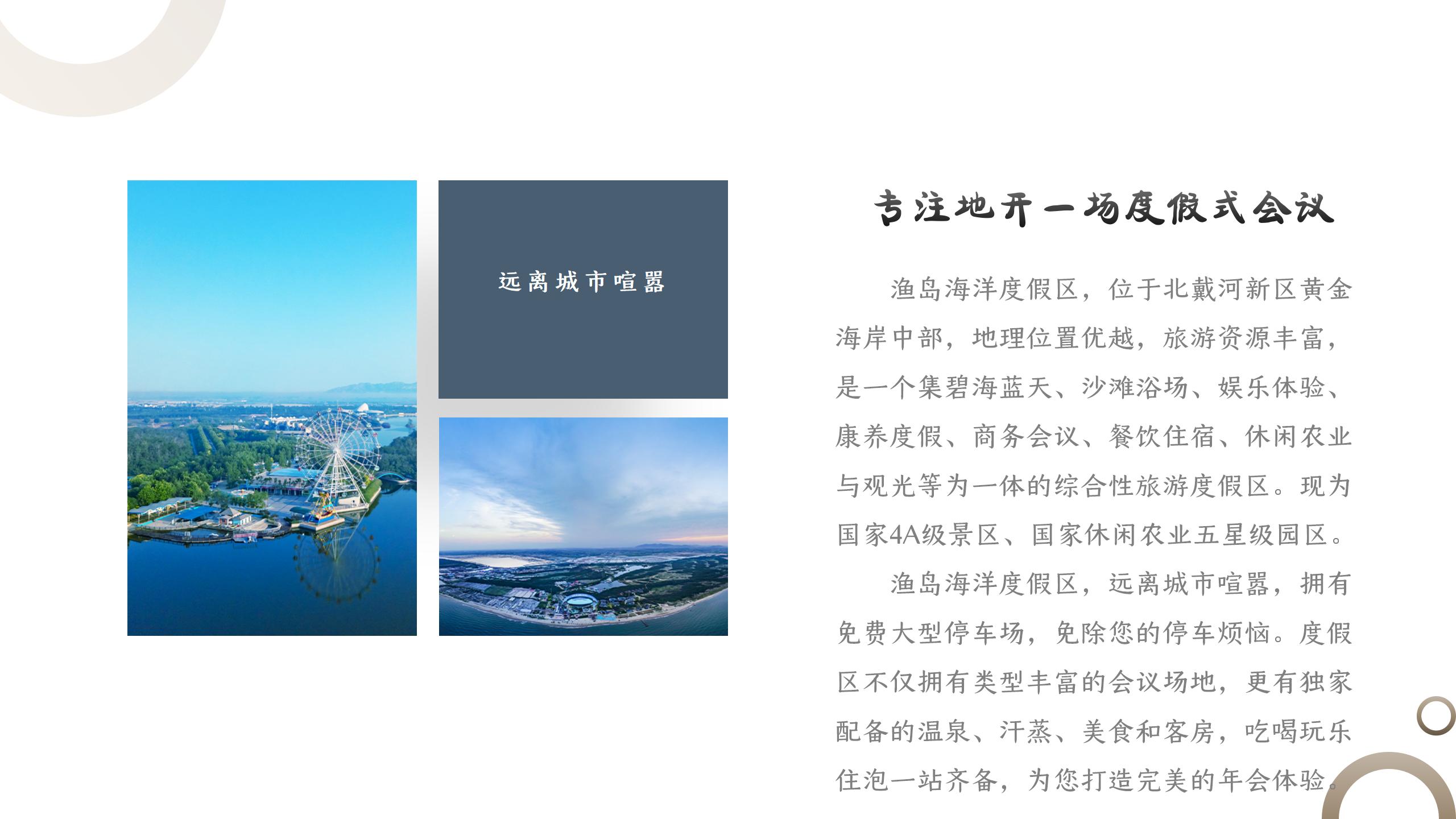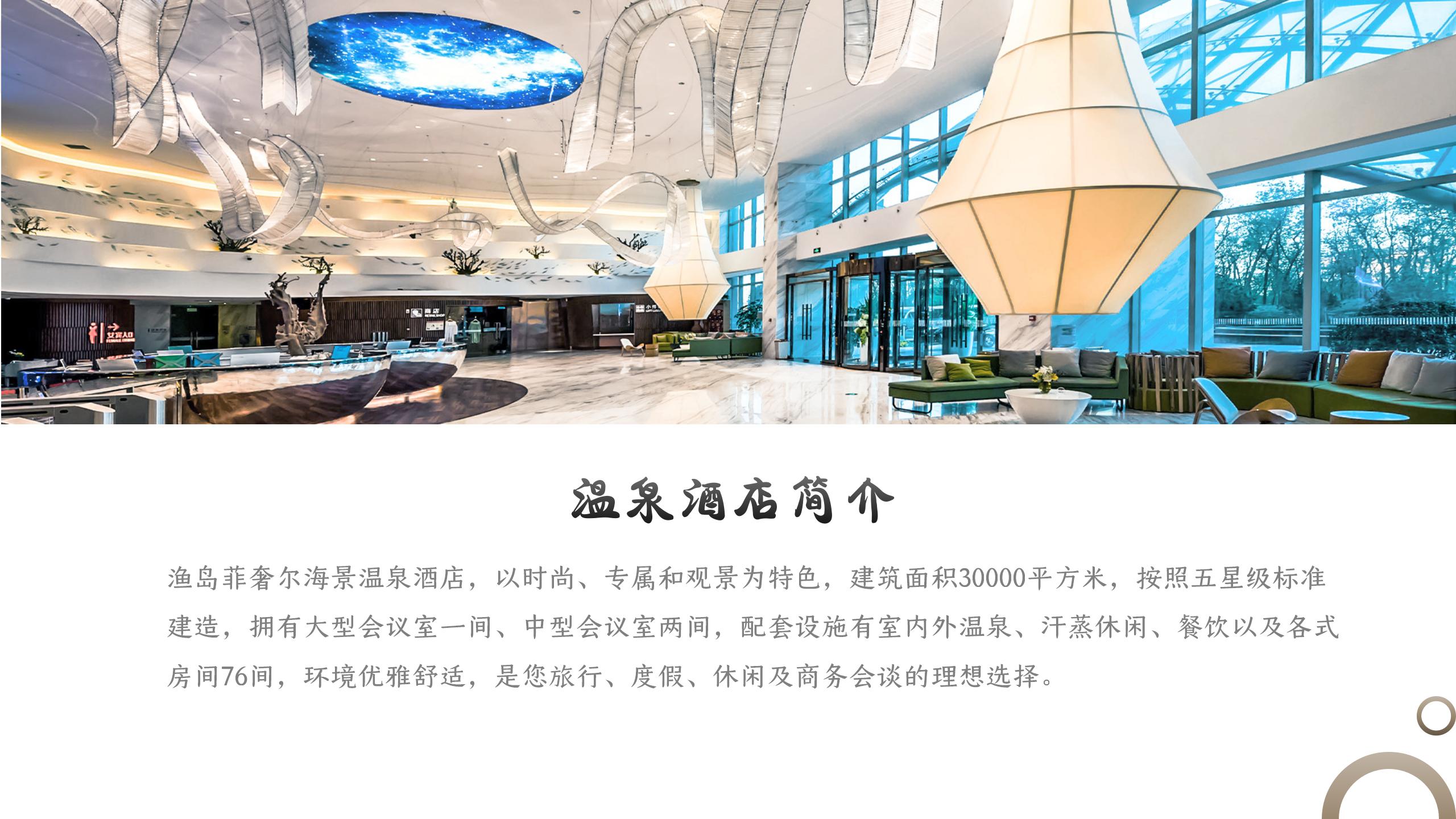 渔岛海洋度假区,远离城市喧嚣,拥有免费大型停车场,免除您的停车烦恼。度假区不仅拥有类型丰富的会议场地,更有独家配备的温泉、汗蒸、美食和客房,吃喝玩乐住泡一站齐备,为您打造完美的年会体验。
